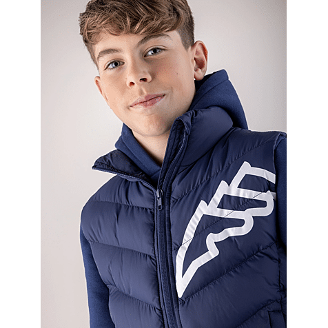 Die gepolsterte Junior-Weste vereint Wärme und Komfort mit umweltfreundlichem Stil und verfügt über das Eco-Duvet-System aus recycelten PET-Flaschen.
