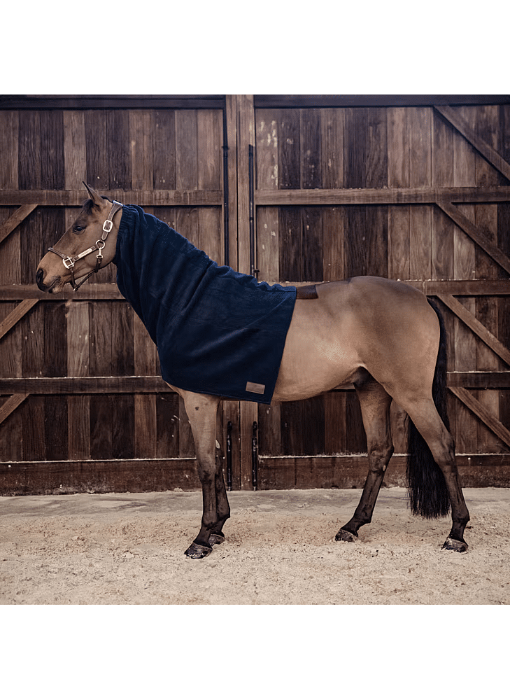 Für diese Decke verwenden wir den gleichen Stoff wie für unsere beliebte Turnierdecke Fleece Heavy, der sich ideal zum Trocknen Ihres Pferdes nach dem Reiten, Waschen oder an kälteren Tagen im Stall eignet. Aussehen und Haptik sind identisch zu einer echten Wolldecke, ohne die Nachteile, die dieser Stoff mit sich bringen kann.