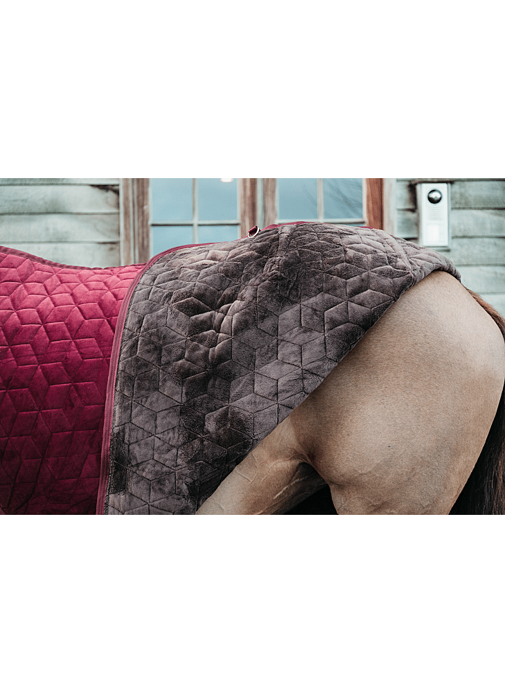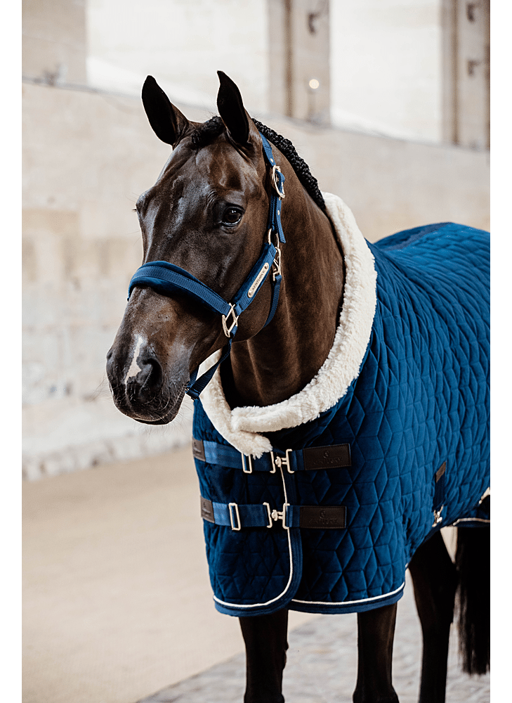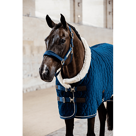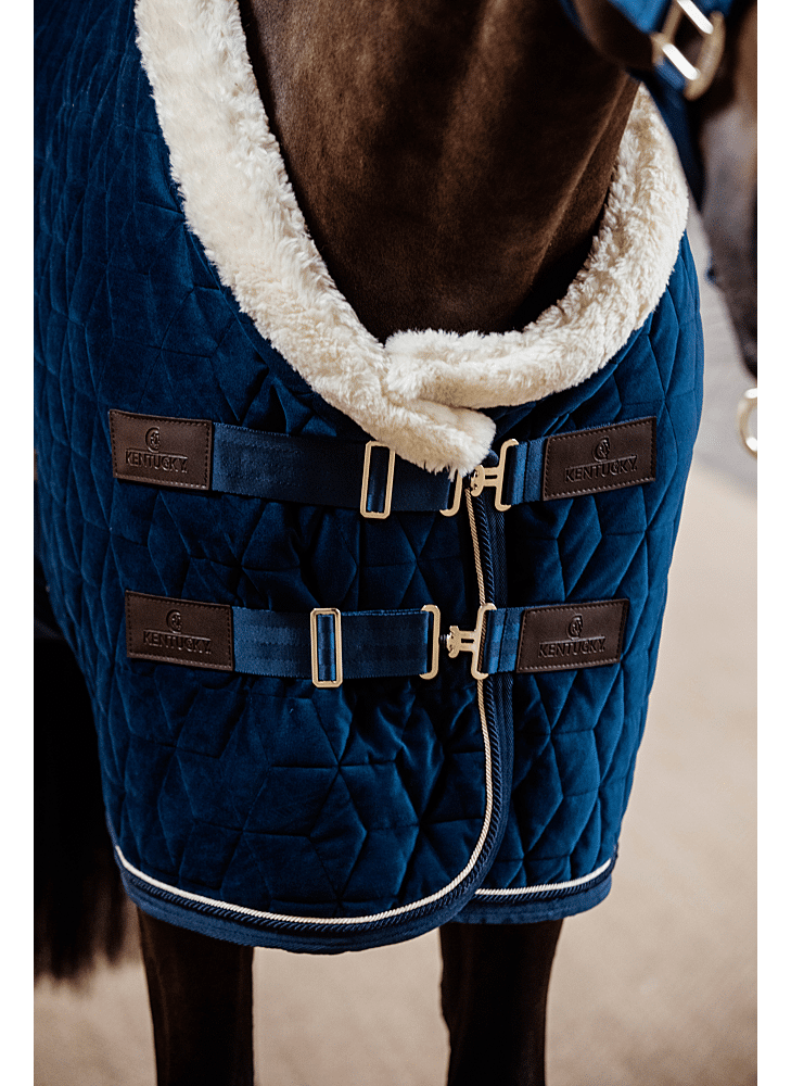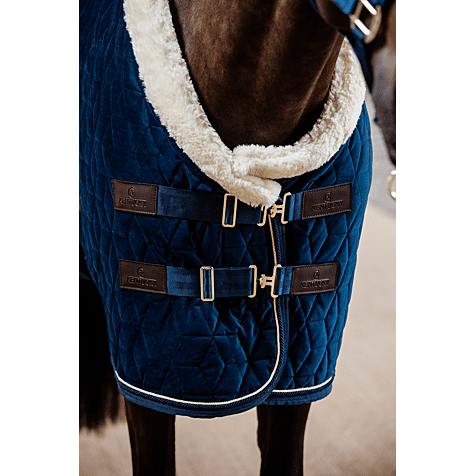 Machen Sie einen stilvollen Eindruck bei Turnieren und im Stall mit der Kentucky Showdecke Velvet. Diese luxuriöse Pferdedecke kombiniert einen schicken Samt-Look mit praktischen Eigenschaften, damit Ihr Pferd im Winter warm und bequem bleibt. Dank der kubisch gesteppten Struktur ist die Decke besonders robust und langlebig, während das Futter aus künstlichem Kaninchenfell dafür sorgt, dass die Decke perfekt an ihrem Platz bleibt.