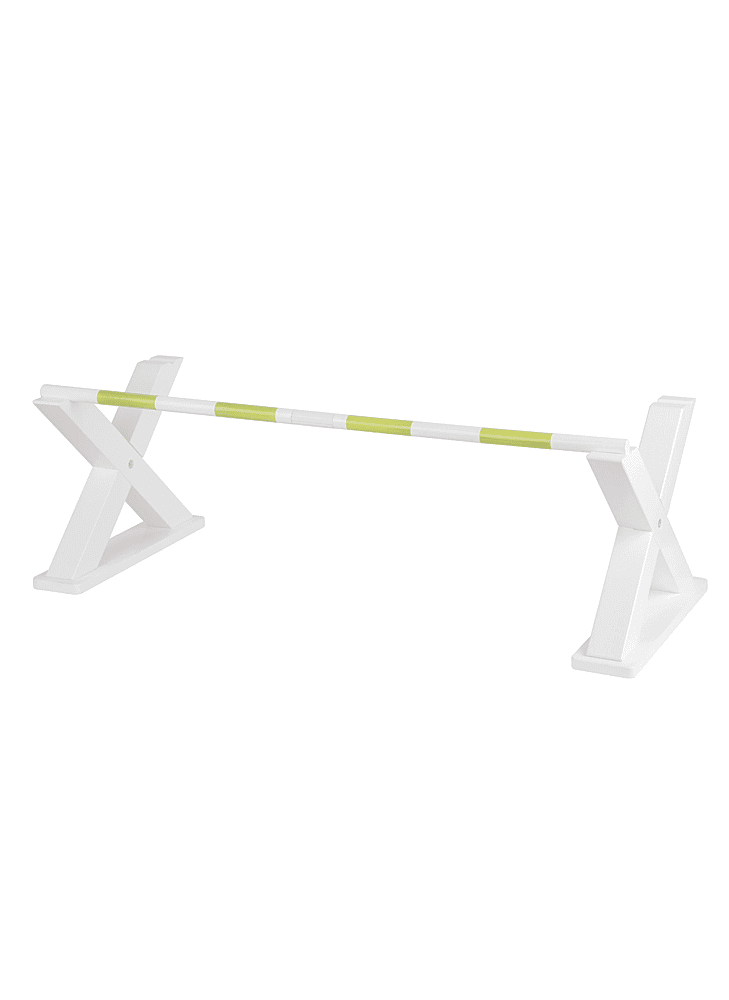 Elevate your hobby horse training to new heights with our byASTRUP® hobby horse cavaletti jump. Included is a divisible pole in white and green stripes. The divisible pole can be placed in three different ways: in the middle or on each leg, providing you with versatile training options.
