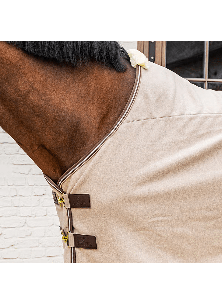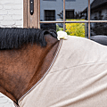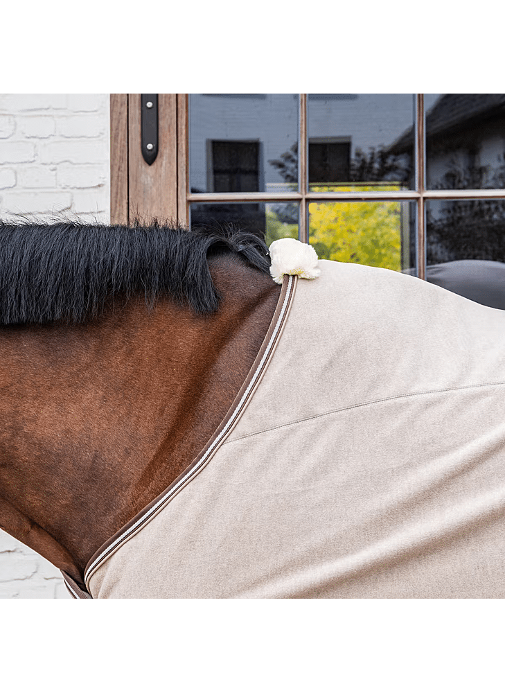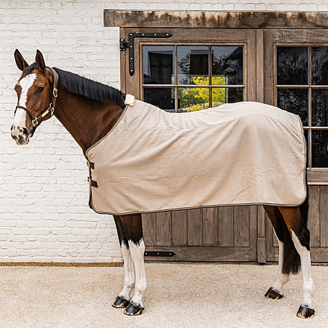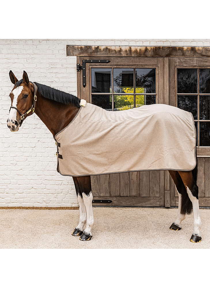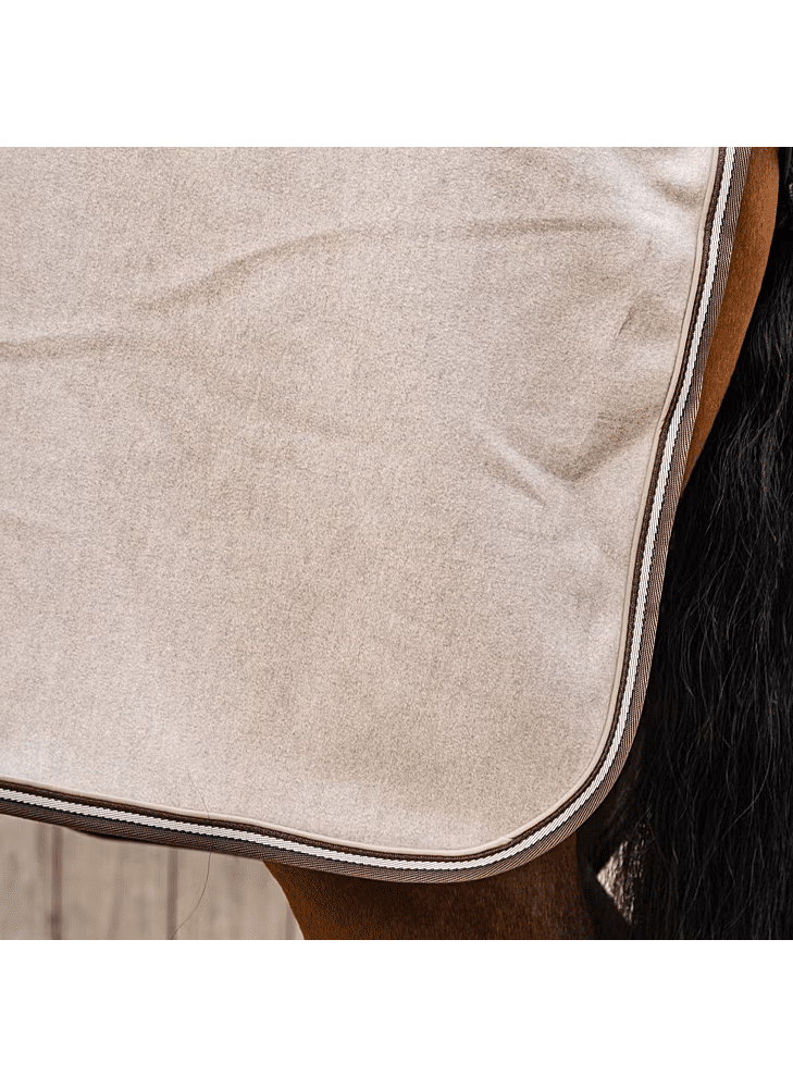 This moisture-regulating fleece blanket is made from highly absorbent material that quickly wicks moisture away from the inside to the outside, keeping your horse dry and warm. Thanks to its quick-drying properties, the coat dries within 5 to 10 minutes, depending on the length of the hair, even in winter. The blanket prevents cooling and is ideal after sweating or washing, as it helps to maintain body temperature. The breathable design ensures optimal air circulation and long-lasting comfort. The warm and durable melange fleece is suitable for daily use and offers excellent thermal insulation. The elegant finish with subtle piping accentuates the melange shades and gives the rug a stylish look. Faux leather front fastenings, a tail cord and a removable inner girth combine to ensure a secure, stable and refined fit.