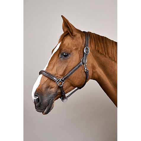 This bridle is crafted from premium buffalo leather, ensuring exceptional strength and long-lasting durability. The refined stitching details on the nose and sides give it an elegant, luxurious look. Thanks to its classic and timeless design, this bridle remains stylish season after season. The adjustable headpiece offers a comfortable, personalised fit, while the practical carabiner hooks ensure quick and easy fastening.