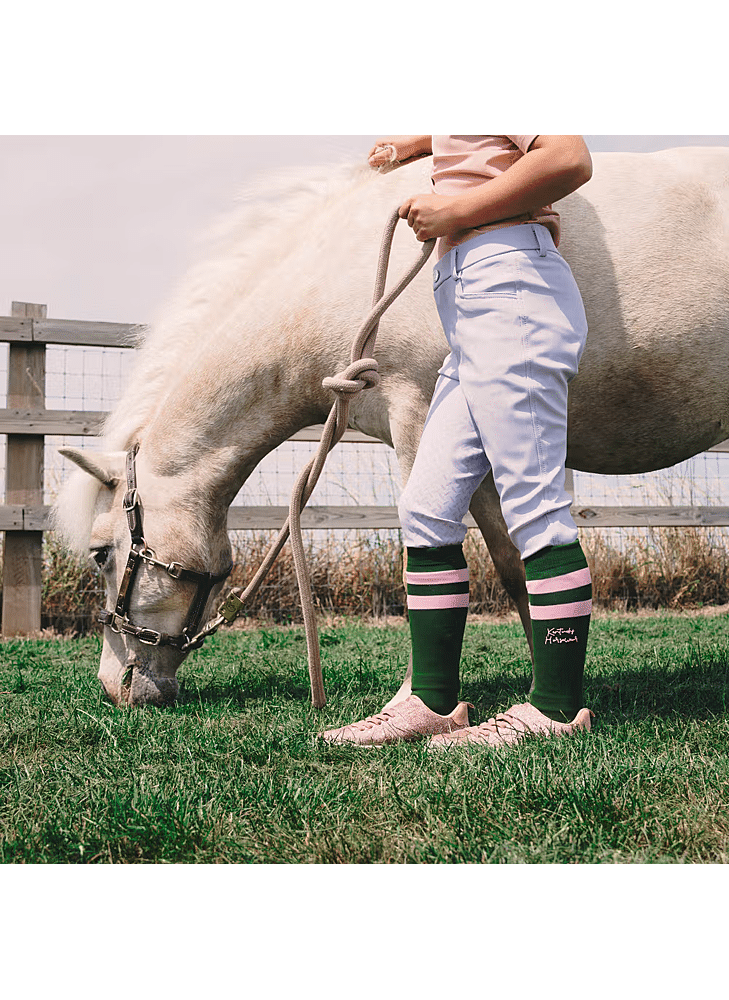 Breng plezier en comfort in de rij- of dagelijkse outfit van je kind met onze gestreepte kindersokken. Verkocht in een set van 2 met speelse kleurcombinaties, speciaal ontworpen voor kleine voeten. Licht, ademend en de hele dag comfortabel – perfect voor actieve ponyruiters of kinderen die altijd onderweg zijn.