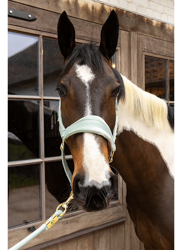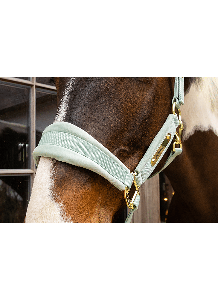 Pour tous les fans de nos équipements velvet, nous avons maintenant un licol avec un tissu en velours. La plaque du licol peut être retournée et personnalisée avec le nom de votre cheval, par exemple.