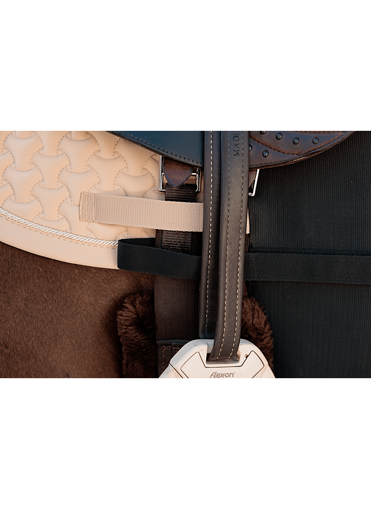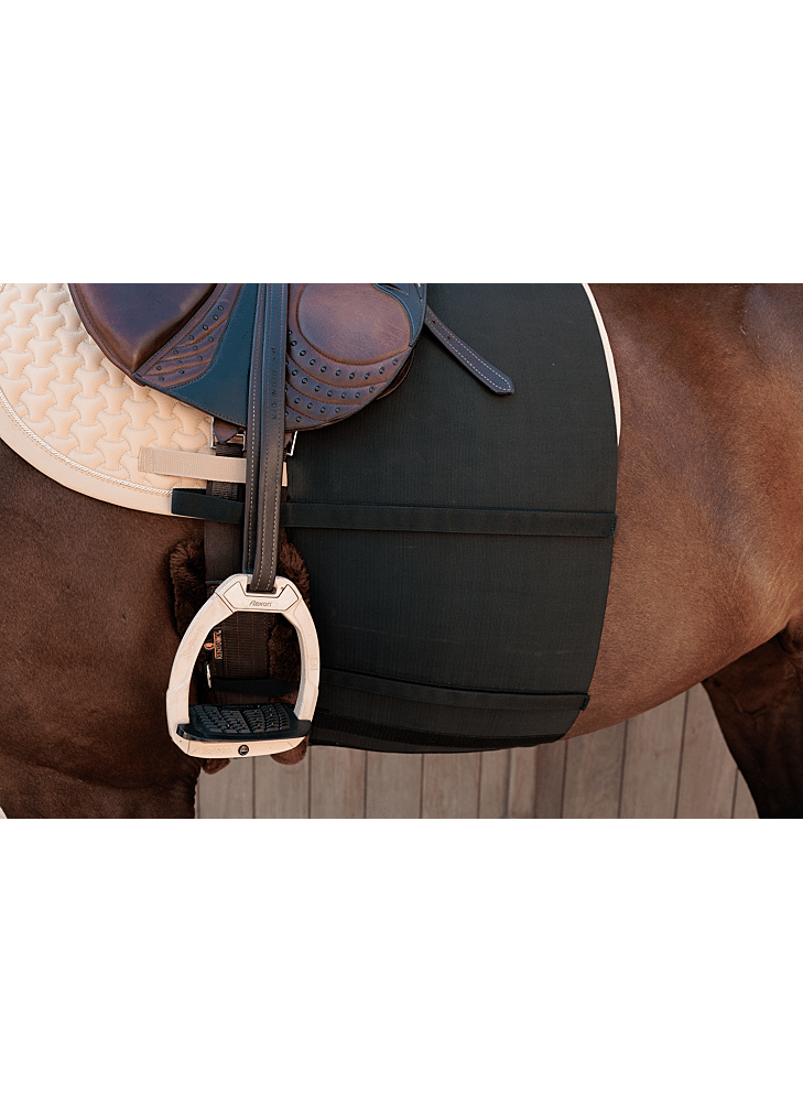 Voorkom schuurplekken en ongemak met onze extra brede Belly Band, speciaal ontworpen voor paarden die gevoelig zijn voor irritatie door beencontact. Deze paardvriendelijke oplossing biedt uitstekende bescherming zonder de bewegingsvrijheid te beperken.