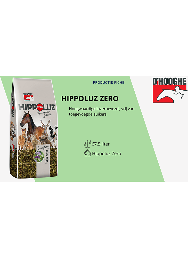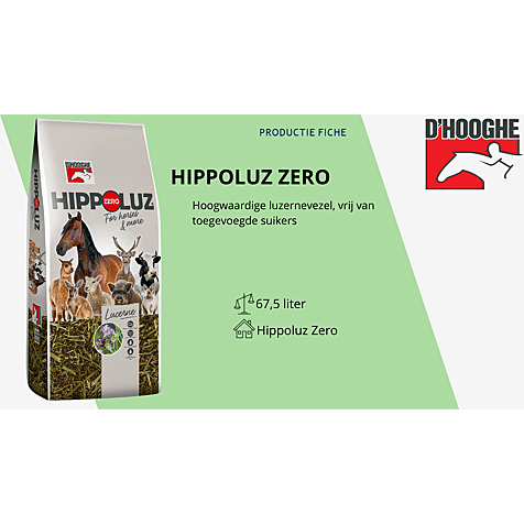 D'hooghe hippoluz zero luzerne is een hoogwaardige vezel vrij van toegevoegde suikers.