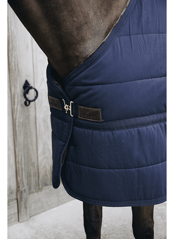 De binnenzijde is volledig gevoerd met artificiële konijnenvacht, die kleine isolerende luchtlaagjes creëert en zo de lichaamswarmte van je paard vasthoudt. Dit zorgt voor extra warmte en comfort, terwijl schuurplekken worden voorkomen en de vacht mooi blijft glanzen. Perfect voor gevoelige of geschoren paarden. Dankzij de comfortabele pasvorm blijft het onderdeken netjes op zijn plaats onder je winterdeken.