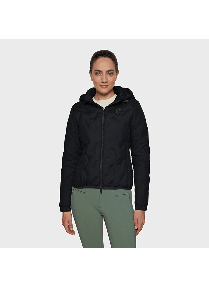 Een verfijnd ontwerp met ton-sur-ton ritssluiting, ultrasone stiksels en een onzichtbare ritszak. Voorzien van een afneembare capuchon en een subtiele Swarovski® blazon patch. Gemaakt van lichtgewicht, comfortabel Dupont Sorona-vezel: waterafstotend en machinewasbaar.