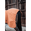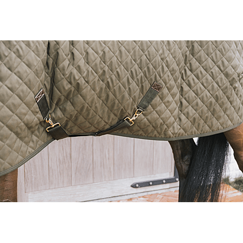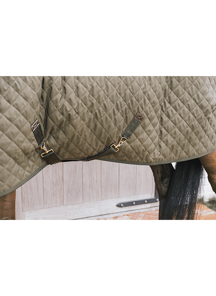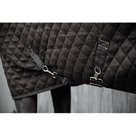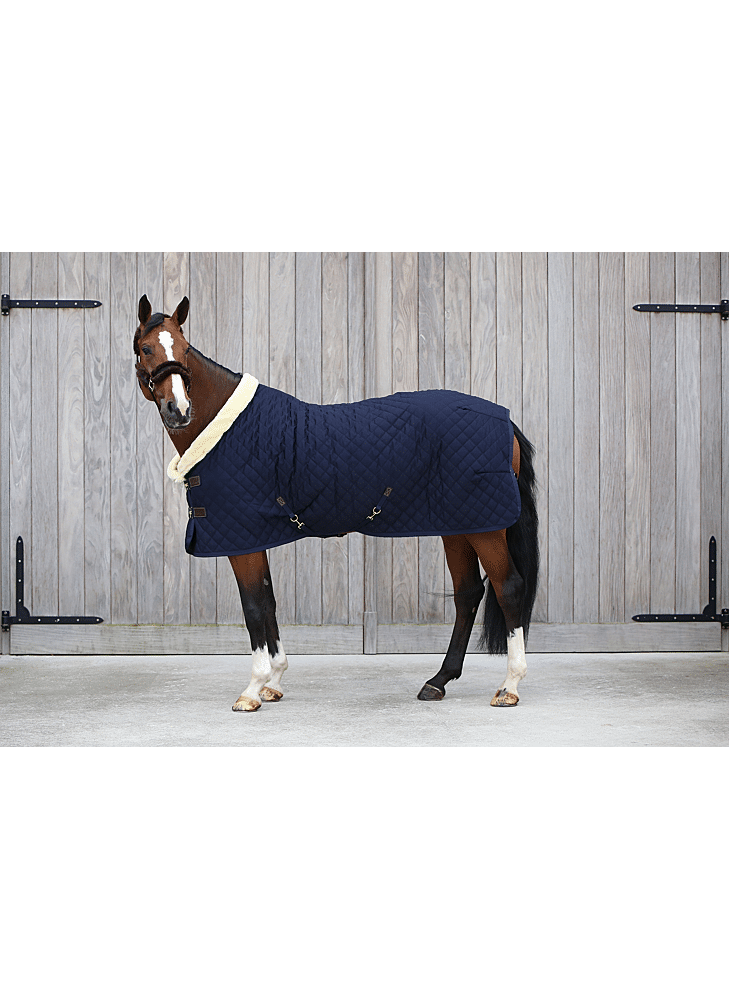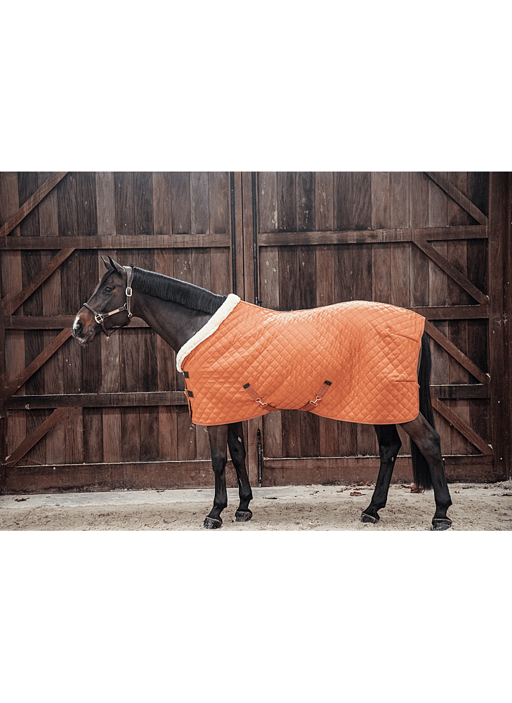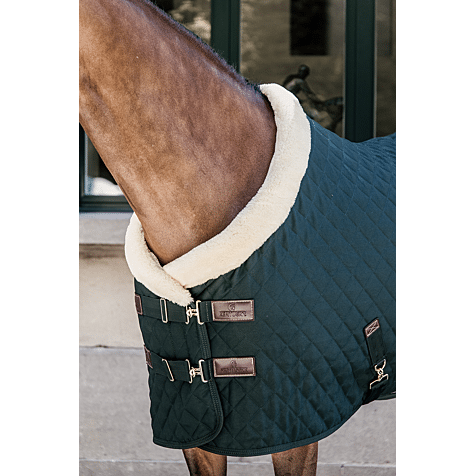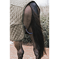 De 160g fiber fil vulling biedt een optimale warmte/gewicht verhouding en neemt geen geuren op. De artificiële konijnenvacht voering voorkomt schuurplekken, houdt de lichaamswarmte vast en zorgt voor een glanzende vacht. Extra artificiële wol aan de kraag vermindert druk op schouders en schoft, wat het comfort verhoogt bij gevoelige paarden.