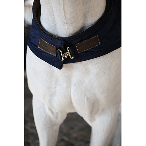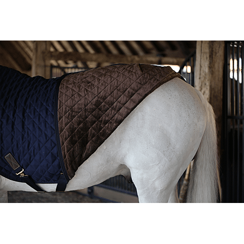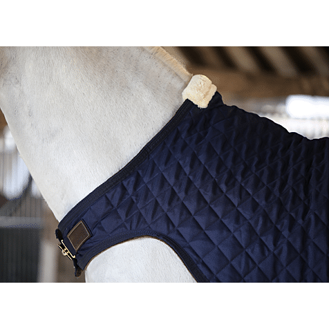 De voering in artificiële konijnenvacht houdt de lichaamswarmte vast, voelt zacht aan en helpt schuurplekken voorkomen. Extra artificiële wol aan de schoft verhoogt het comfort, ook bij gevoelige paarden.