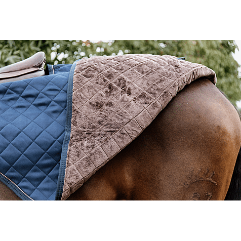 De voering in artificiële konijnenvacht houdt de lichaamswarmte vast dankzij isolerende luchtlaagjes. Het voelt zacht aan, helpt schuurplekken voorkomen en zorgt voor een glanzende vacht. Zo blijft je paard warm zonder in te boeten op comfort.