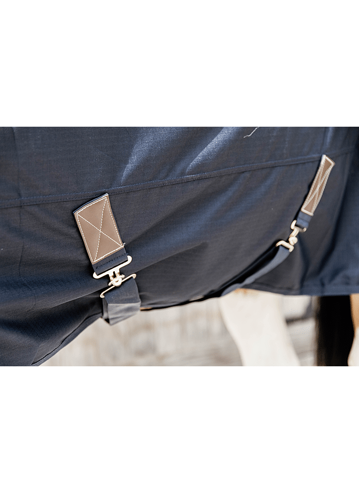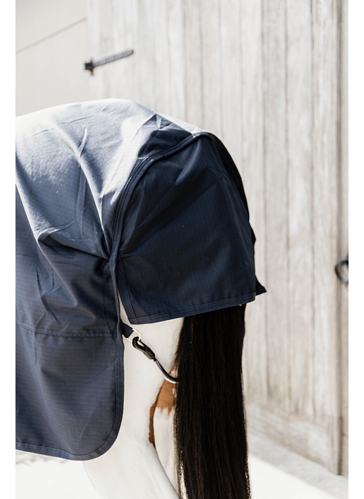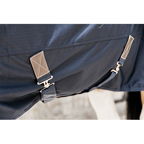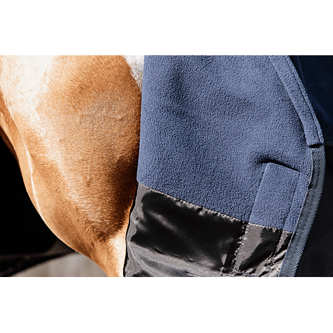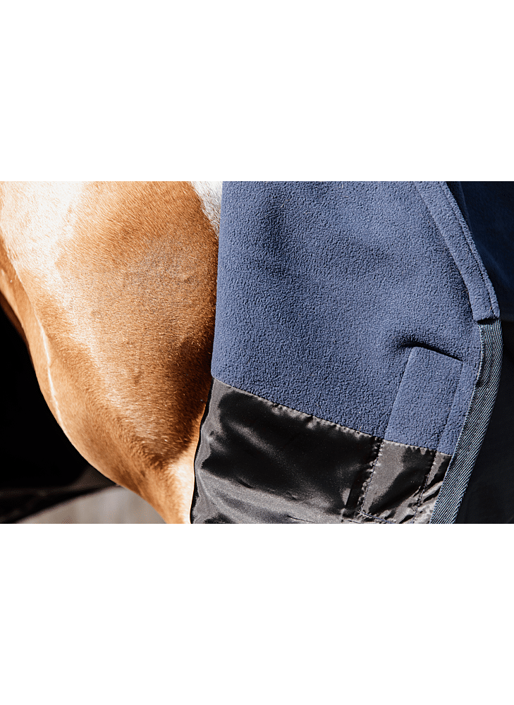 Het robuuste 600D ripstop buitenmateriaal met waterdichte coating beschermt tegen regen, wind en modder. Dankzij de geïntegreerde fleece in de rug en nek wordt zweet snel geabsorbeerd en blijft uw paard warm zonder af te koelen. Dit helpt spierspanning en verkoudheid te voorkomen, vooral na inspanning.