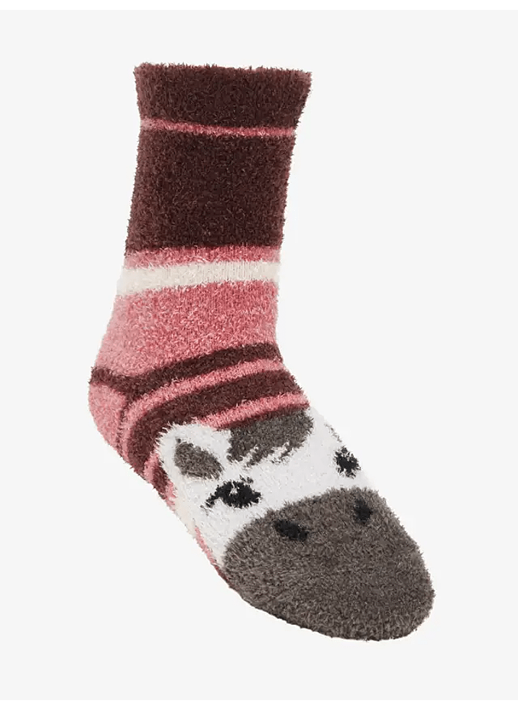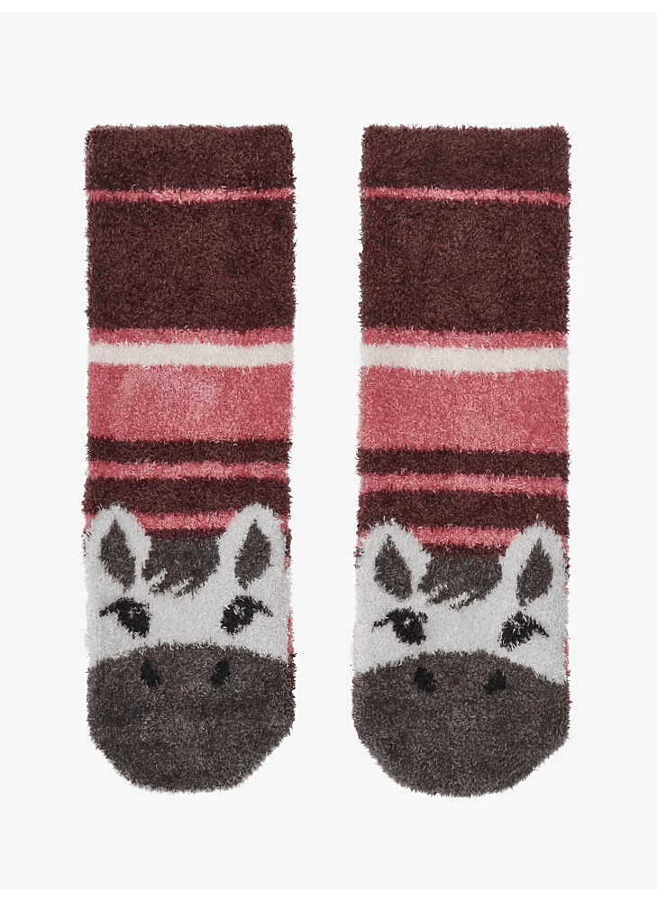 De superzachte pluizige stof zorgt voor luxe warmte, terwijl de miniponyprint de tenen in stijl warm houdt.
